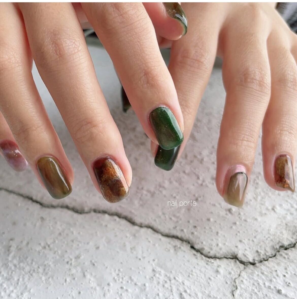 グリーンのニュアンスネイルは、手元の洒落感をぐっと高めてくれますね🤞