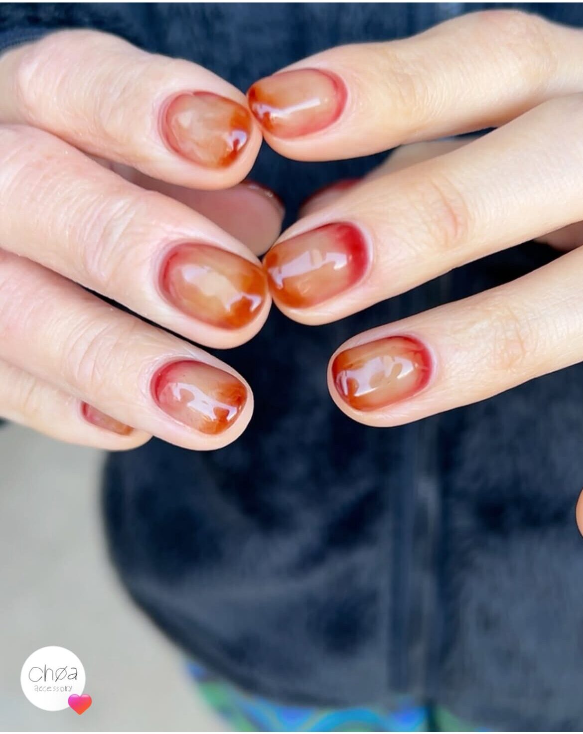 うっすらもけもけ入りの赤茶nail‪ 🎈